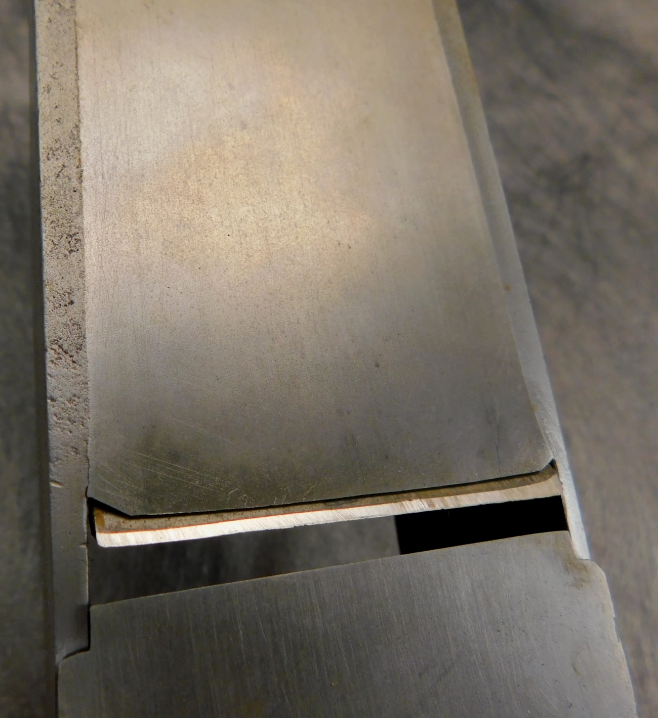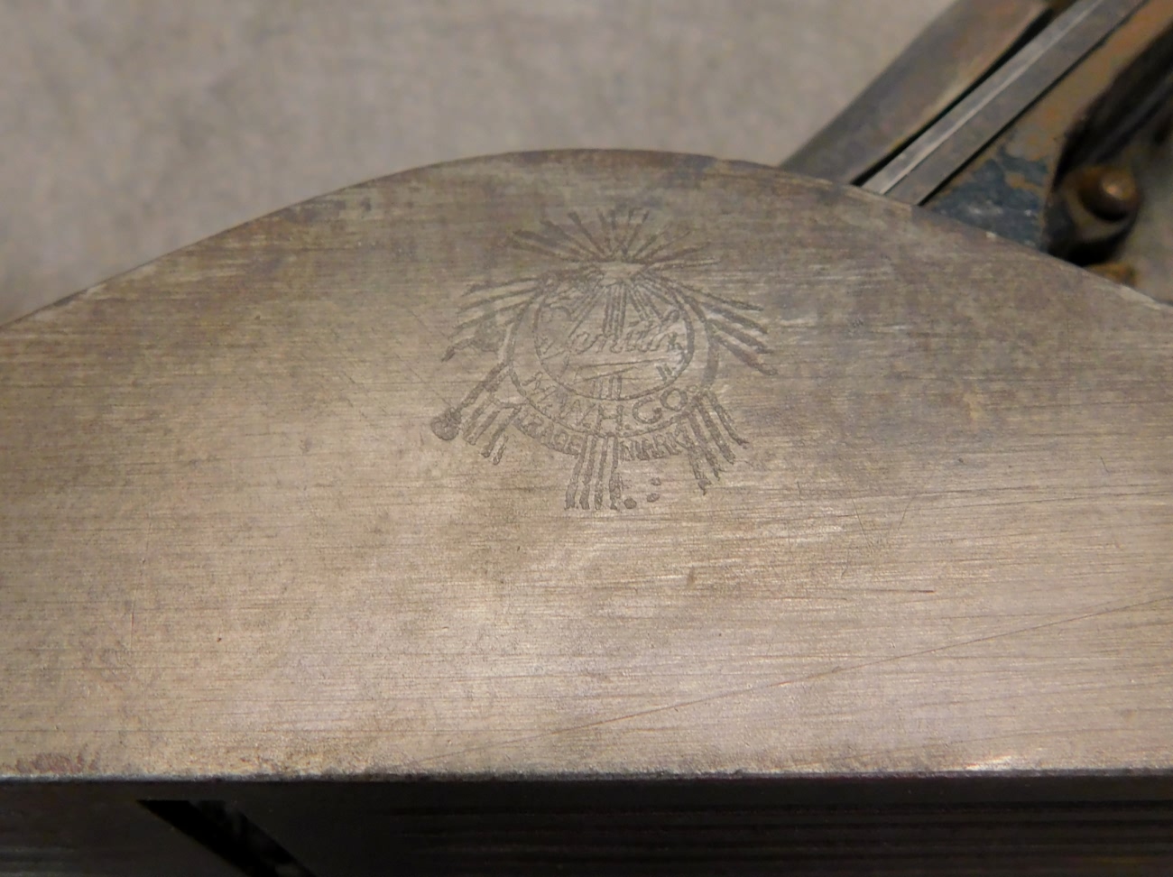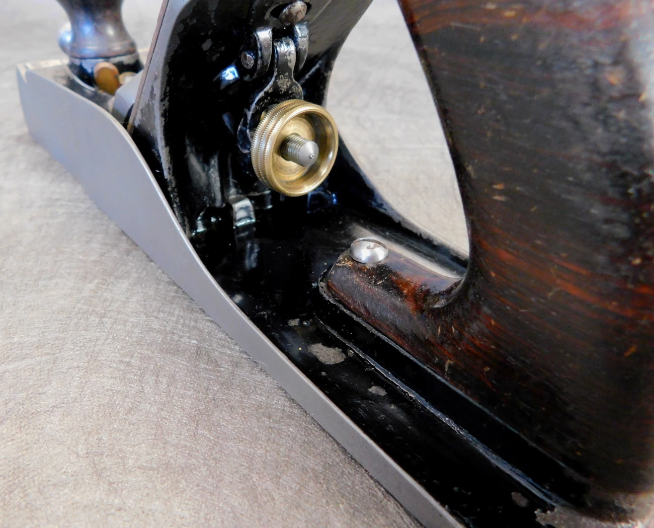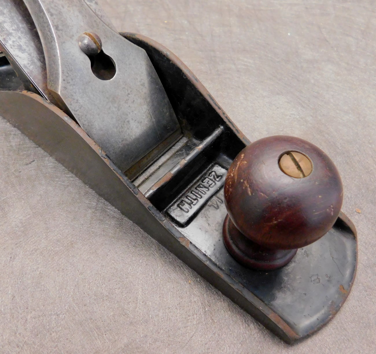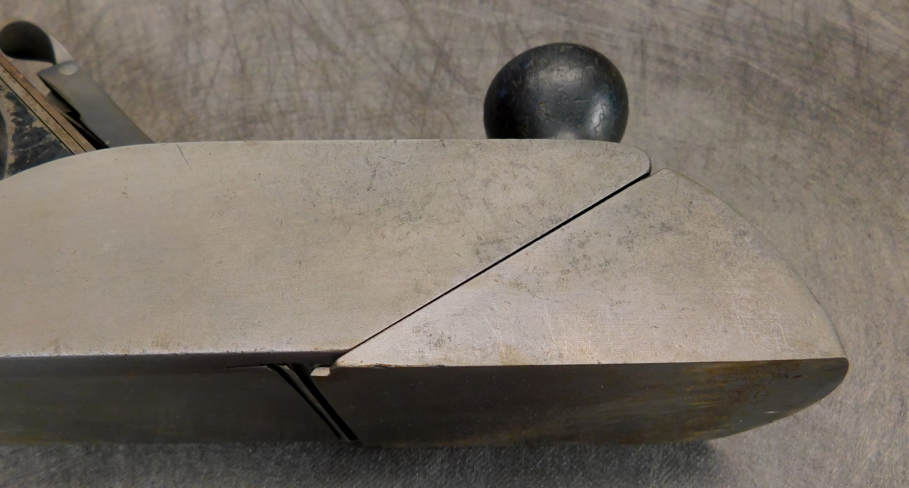 well made and nicely machined. The japanning is original and close to 90%. There are minor cracks on both sides of the throat where he chamfered the edges of the sole