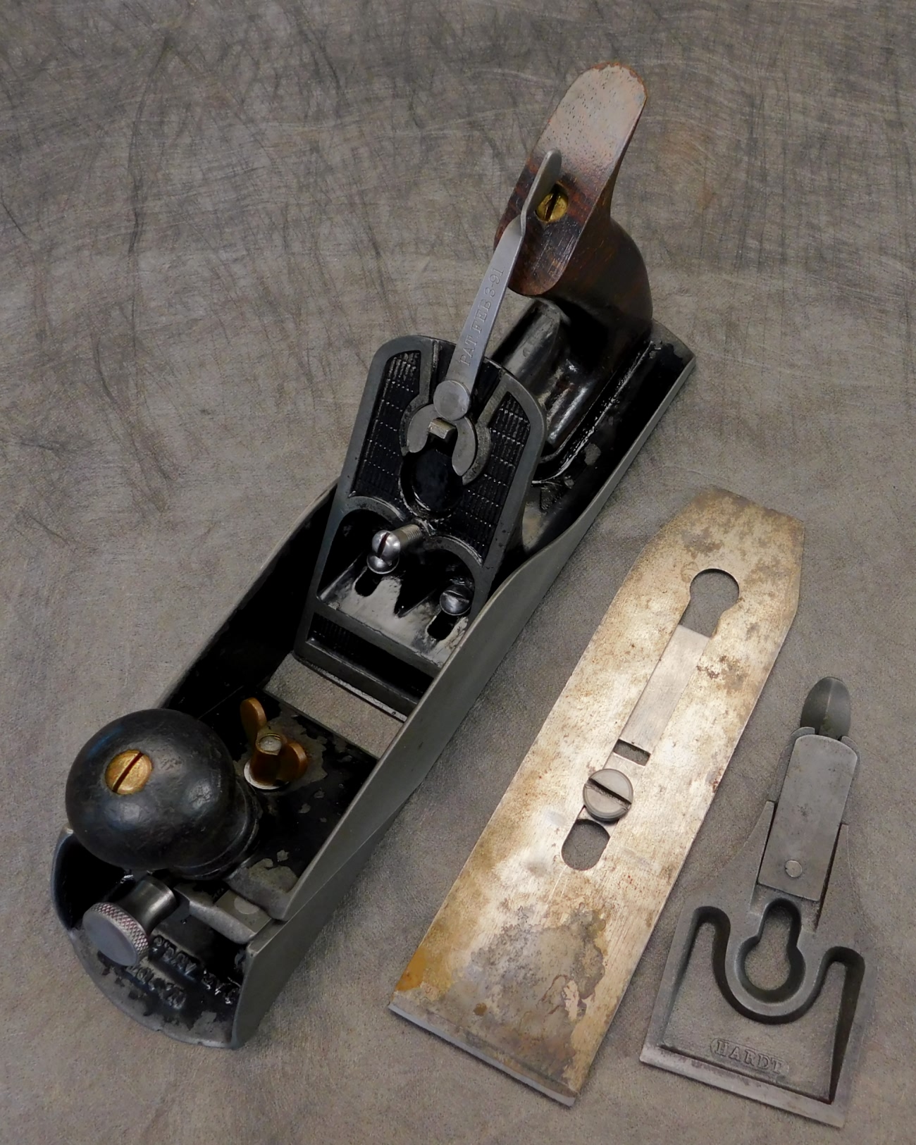 The patent for this unusual block plane was issued on August 8 1893 to Louis Hardt