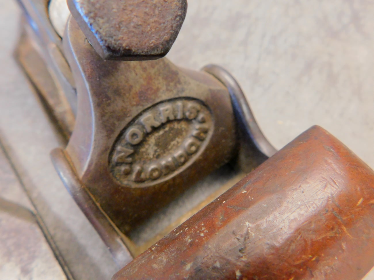 marked Norris. The lever cap is marked Norris as well. The tightening bolt