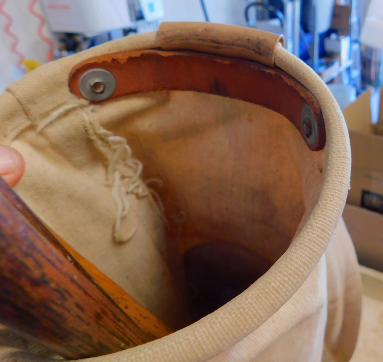fabric gold bag is in good overall used condition and not rotten. The strap is marked